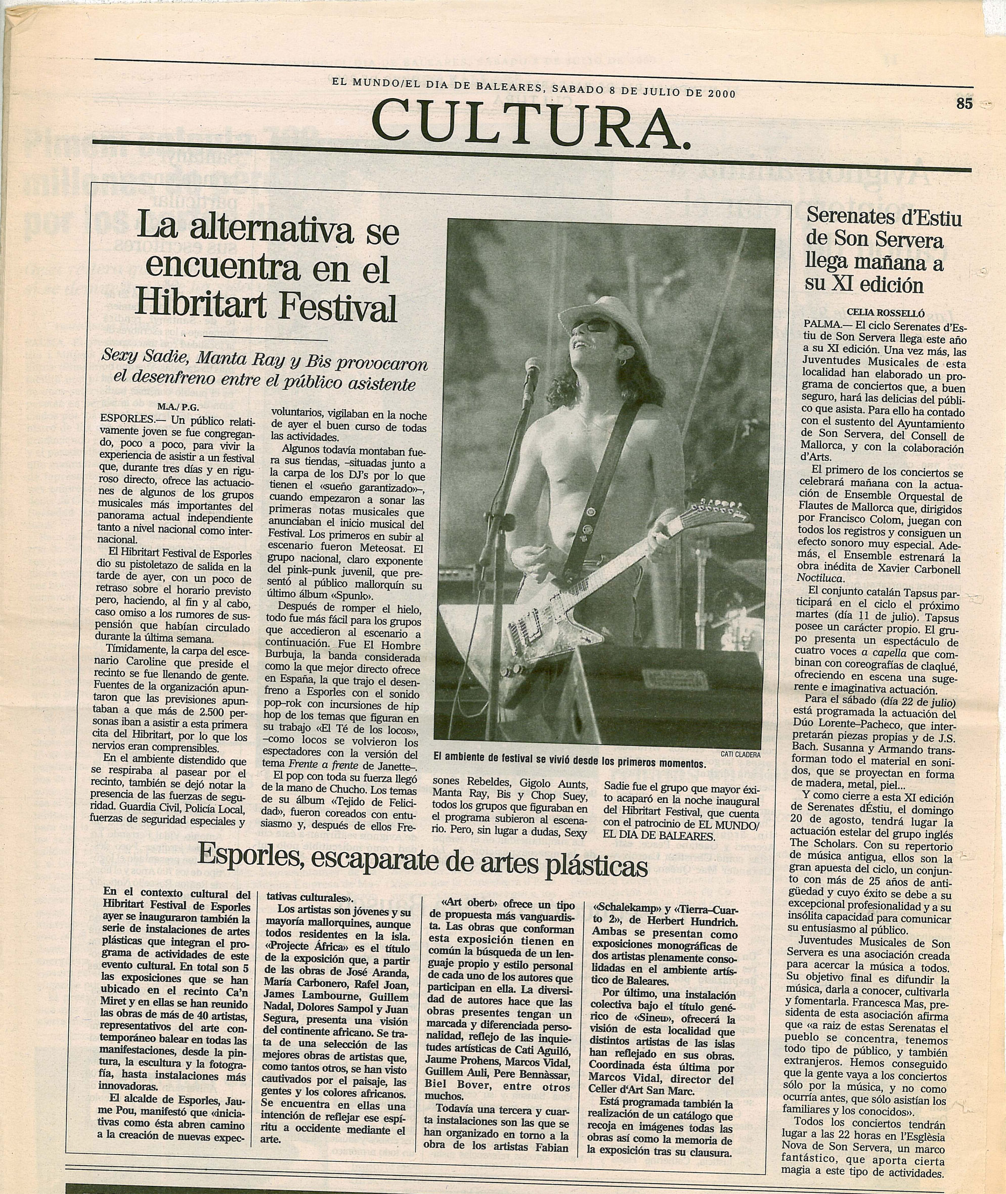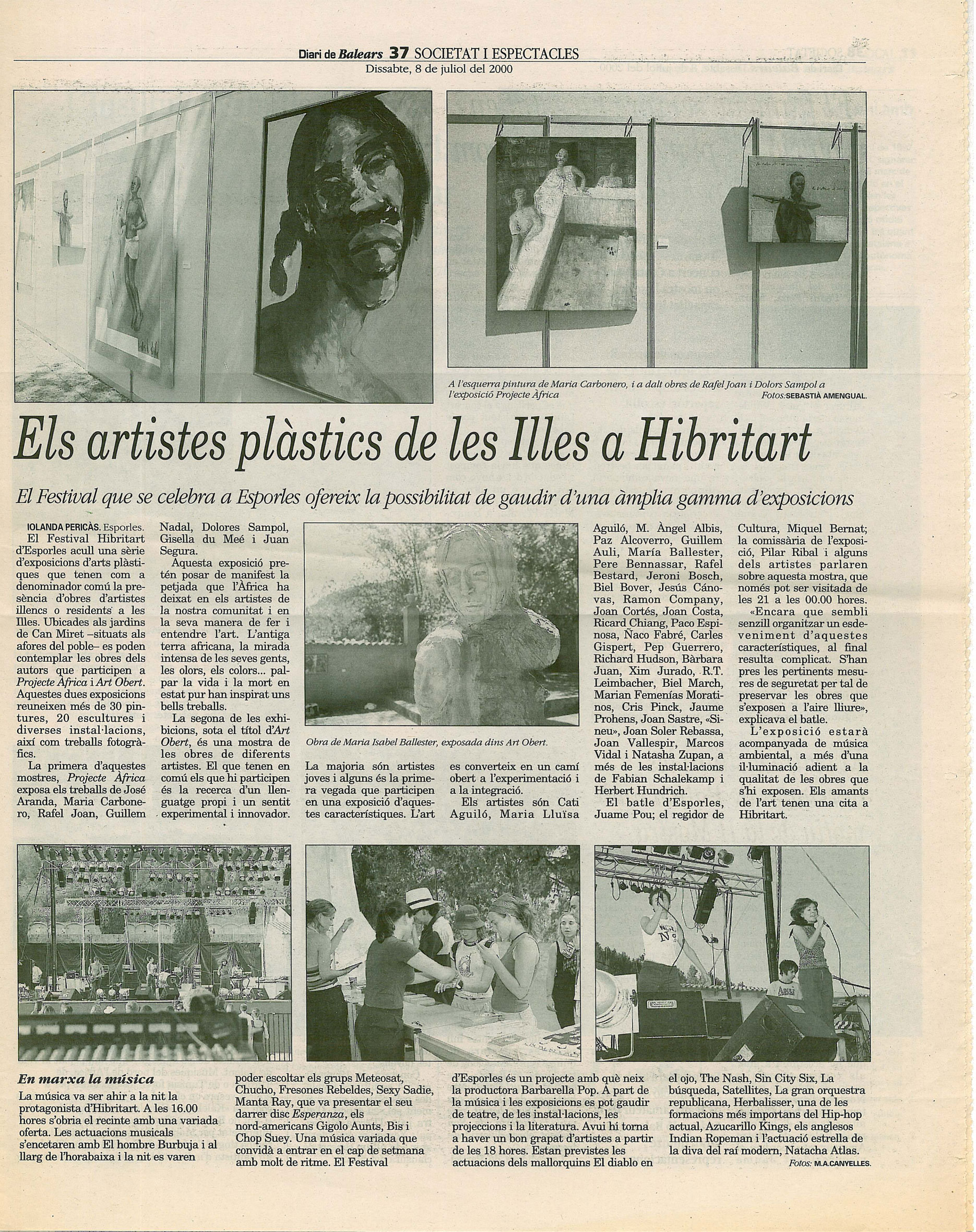 HIBRITART FESTIVAL | Exposició col·lectiva Fecha: julio 22, 2000Autor: pacoespinosaa Categoria: Escrits | Publicacions | Premsa, Panell d'exposicions Navegador de artículos ← DINÀMICA | Exposició individual | Cas Metge Rei Carpeta «7 i 7» | Carpeta formada per litografies i poemes | Edicions 6a Obra Grafica → Diari de Balears. Dissabte, 8 de juliol del 2000 >>>>>>>>>>>>> EL MUNDO/EL DIA DE BALEARES, SABADO 8 DE JULIO DE 2000 >>>>>>>>>>>>> Ultima Hora. Sábado 8 de julio de 2000 Comparte esto: Compartir en X (Se abre en una ventana nueva) X Compartir en Facebook (Se abre en una ventana nueva) Facebook Me gusta Cargando... Relacionado