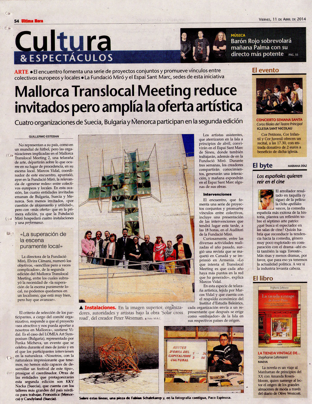DISSABTE 12 d’abril: 20 hores, Inauguració de l’Expocició MALLORCA TRANSLOCAL MEETING a Espai sant marc, Sineu