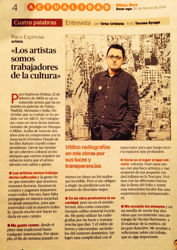 ENTREVISTA ULTIMA HORA | PACO ESPINOSA Fecha: mayo 1, 2014Autor: pacoespinosaa Categoria: Escrits | Publicacions | Premsa Navegador de artículos ← RESTES D’OBRA DEL CAPITALISME CULTURAL | Paco Espinosa | MallorcaTranslocal Meeting 2 RESTES D’OBRA DEL CAPITALISME CULTURAL | PACO ESPINOSA | INCART2014 → >>>>>>>>>>>>>> Comparte esto: Compartir en X (Se abre en una ventana nueva) X Compartir en Facebook (Se abre en una ventana nueva) Facebook Me gusta Cargando... Relacionado